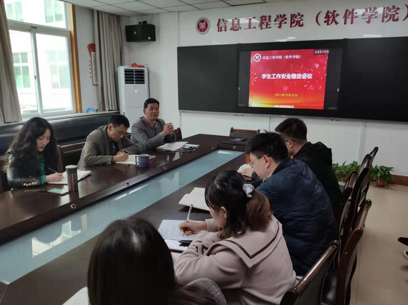 2021年10月25日下午,tyc7111cc太阳成集团(软件学院)学生安全管理工作会议在英才校区教学办公楼210会议室召开。出席本次会议有:院党委书记杨行昌、党委副书记蔡中民、院团委书记郭睿和王安以及全体辅导员。会议由党委副书记蔡中民主持。