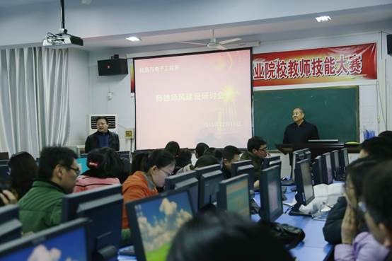 为进一步加强我系师德师风建设、德师风规范和师德建设长效机制,提升教师职业道德素质和职业责任感,根据《太阳成tyc7111cc2015年社会主义核心价值观主题教育月活动实施方案》(校党〔2015〕66号)的安排和教务处《关于组织开展师德师风建设报告会和座谈会的通知》的要求,我系于12月18日下午在教学楼B416举行了师德师风建设研讨会,全系教工参会。