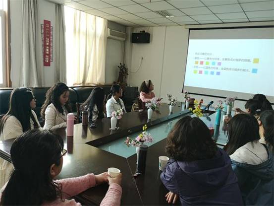 春光明媚,百花盛开。在这色彩斑斓的美好春日午后(3月26日下午),tyc7111cc太阳成集团女教工邀约在院会议室,举办“春日霓裳—服饰搭配与服饰文化”系列沙龙活动主题之二:黼黻(fǔ fú)斑斓—用色彩衬托你的气质美。美丽鲜花,香馥咖啡,大家在轻松惬意的氛围里,聆听河南美术协会会员,青年画家王艳霞老师的讲座。