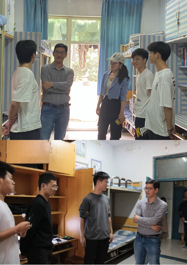 他们先后走访了12号、13号楼的学生寝室,亲切地与同学们聊起了家常,深入了解学生们在学校期间的生活状况和学习状况并告诫学生们在大学期间要专注提升自己的学业。蔡中民书记关切地询问学生们的安全防范情况,叮嘱学生们做好安全防范措施。寝室内欢声笑语,洋溢着师生间的融融情谊,荡漾着节日里的温馨话语:“同学们国庆节和中秋节快乐,小小月饼聊表心意,希望大家能学习生活愉快。因为疫情同学们不能回家,但是不要忘记给家里、给父母打个电话、报个平安、送去问候与祝福!”亲切的言谈中,同学们感受到了一份来自信工学院的浓浓温情。