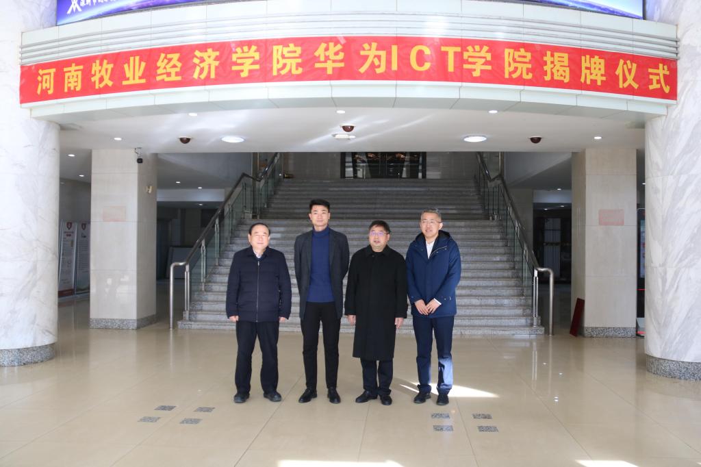 校长罗士喜、副校长张卫宪、华为公司代表张轩、深圳市讯方技术股份有限公司代表董博渊为“华为ICT学院”揭牌。揭牌仪式后,与会领导、公司代表、教师代表合影留念,并实地参观了物联网实验室,连卫民院长向与会代表详细介绍了学院的办学历史、品牌专业、人才培养、办学成果等。