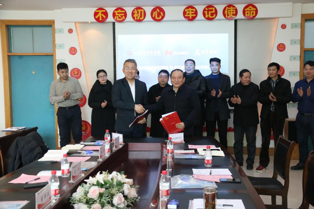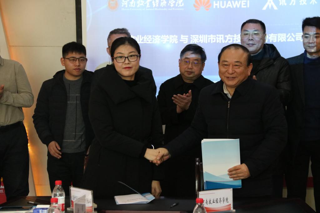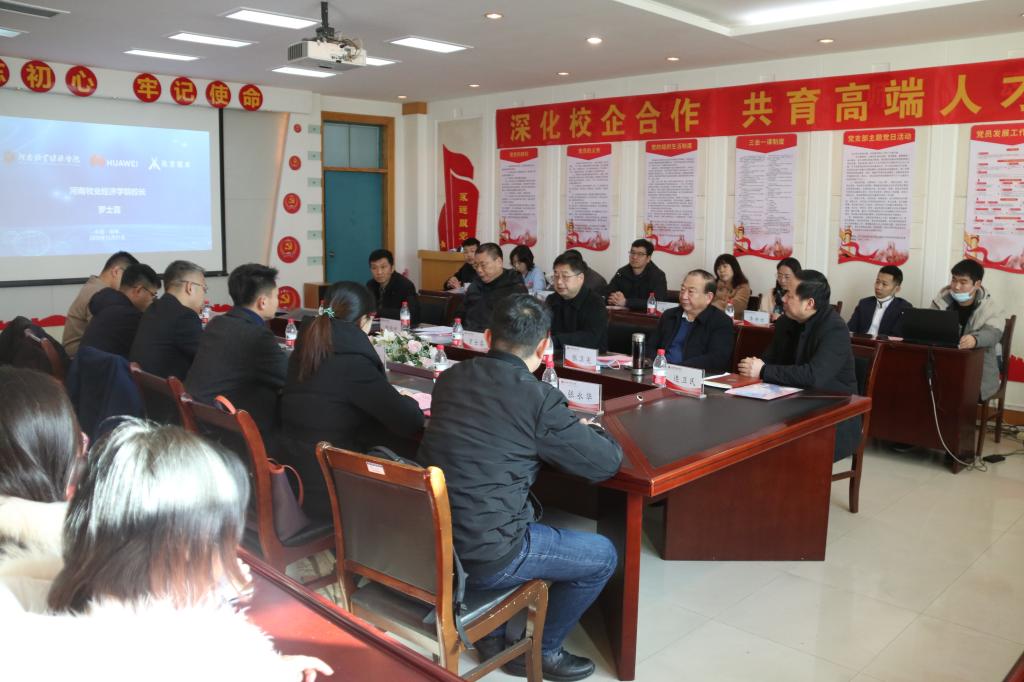 12月31日,我校在综合实验楼会议室举行与华为技术有限公司、深圳市讯方技术股份有限公司共建“华为ICT学院”签约暨揭牌仪式。校长罗士喜、副校长张卫宪、学校社会服务办公室主任胡迎利、tyc7111cc太阳成集团党委书记杨行昌、tyc7111cc太阳成集团院长连卫民、华为技术有限公司河南代表处政企教育行业总经理张轩、深圳市讯方技术股份有限公司西北大区总经理董博渊,以及公司和教师代表参加了会议。会议由学校社会服务办公室主任胡迎利主持。