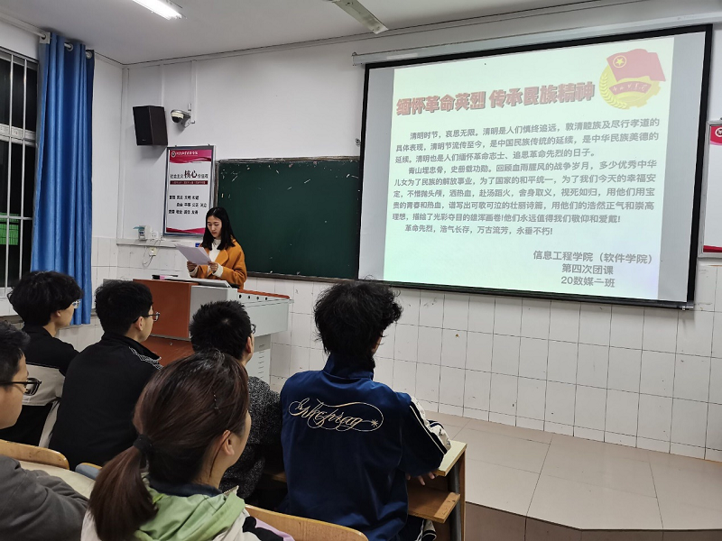 为响应党和学校的号召,缅怀革命先烈,弘扬并深入学习传承民族精神,激发新时代中国青年的使命担当意识,tyc7111cc太阳成集团(软件学院)于2021年3月31日19:30在教学楼B305开展“缅怀革命英烈,传承民族精神”主题团课。