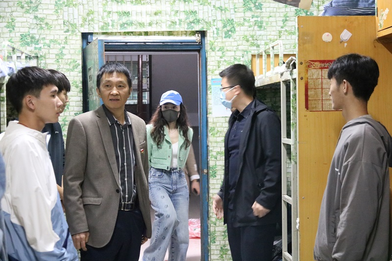 在走访慰问过程中,学院领导走进宿舍内与同学们进行了亲切的交谈,详细地询问了入校以来同学们的思想动态,然后就学生住宿环境、饮食、安全以及宿舍卫生等多方面问题进行了亲切交谈,书记也向同学们强调了个人卫生以及寝室安全等问题,督促同学们养成良好的卫生习惯,鼓励同学们之间要相互理解,相互包容,努力营造一个安全、卫生、文明、和谐的宿舍环境。随后辅导员细心叮嘱同学们天气早晚温差大,注意增减衣物,预防感冒,宿舍要注意通风,做好个人防护,并鼓励同学们快速融入集体,建立和谐融洽的人际关系,激励同学们要抓住际遇,做好人生规划,学好专业知识,提升自身价值。