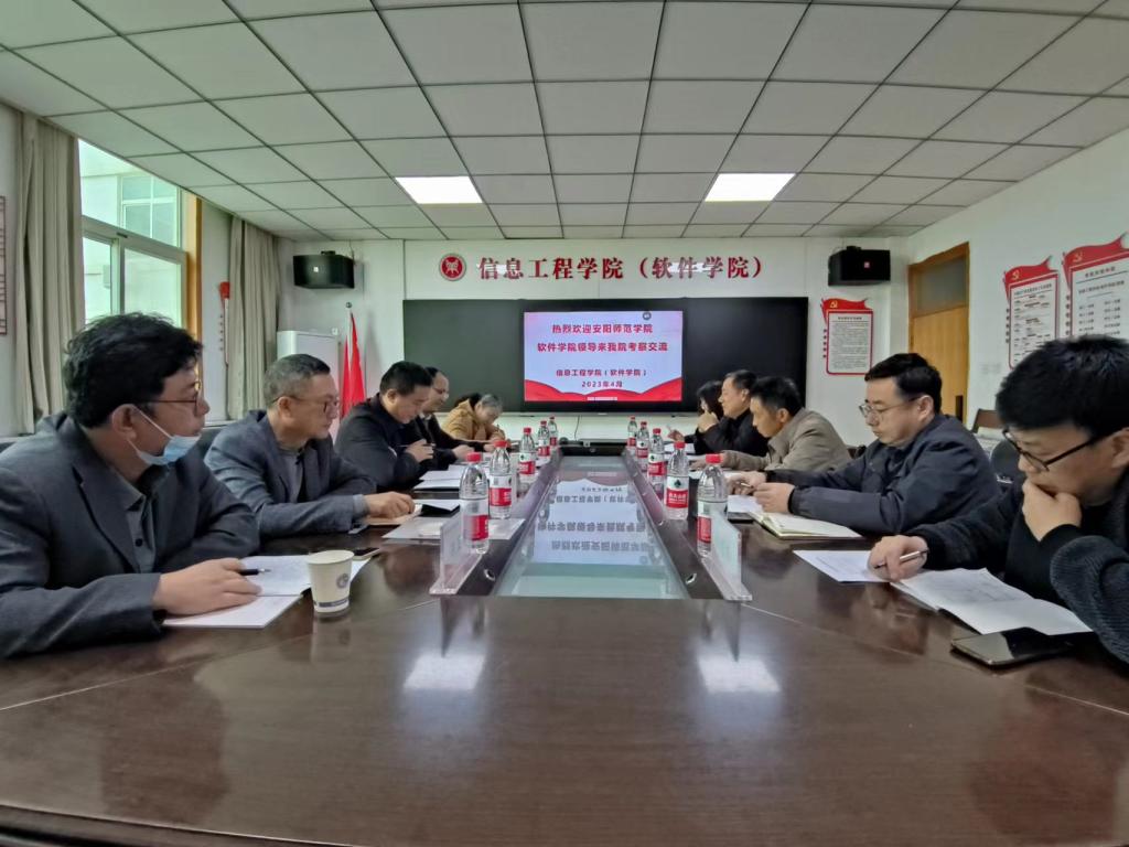 4月6日,安阳师范学院软件学院长刘国英、党委书记李红芳一行六人到我院考察交流,学院党委书记杨行昌、院长连卫民、党委副书记刘向辉、副院长王桂芝、张建伟参加会议,会议由连卫民主持。
