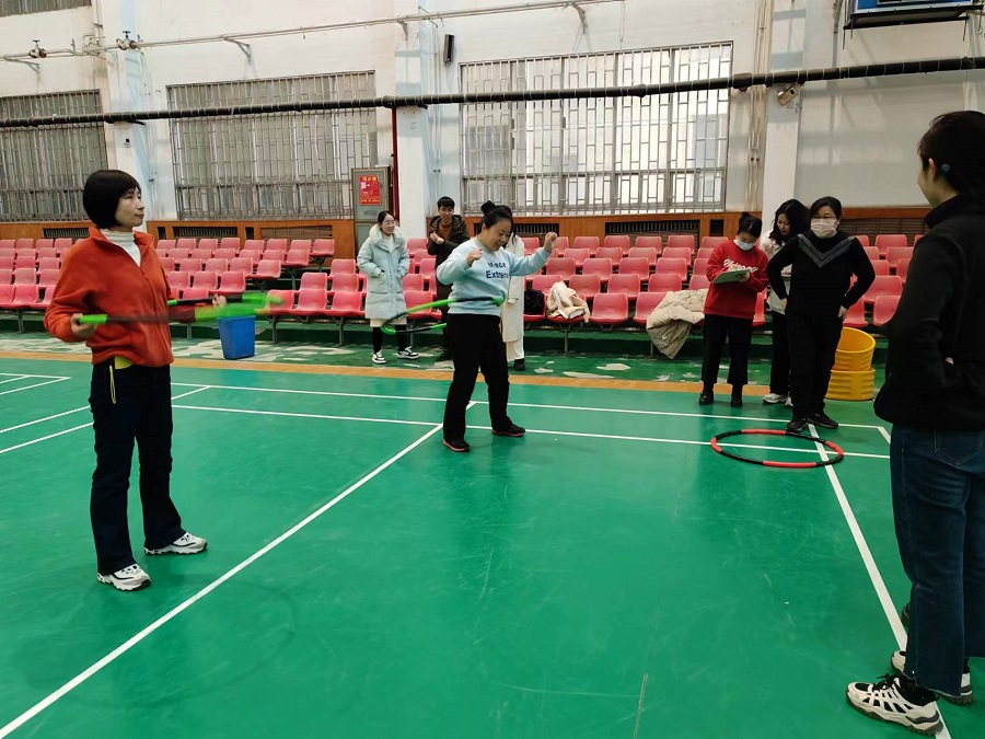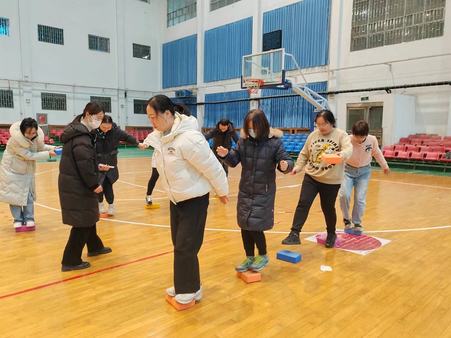 本次趣味运动会既有展示个人运动风采的单人项目“呼啦圈”、“跳绳”和“踢毽子”,又有需要共同合作的团体项目“摸石过河”和“并肩前行”。这些运动项目有趣且刺激,在比拼个人体力与智力的同时还考验参赛选手的协调性。老师们一改往日课堂上的严肃,在比赛中各显身手,通过运动展现出他们的热情活力和拼搏精神,活动现场大家团结协作,共同享受着运动带来的激情和欢乐。经过紧张激烈的角逐,各个项目分别决出了一二三等奖,与会领导为获奖选手颁发了奖品。