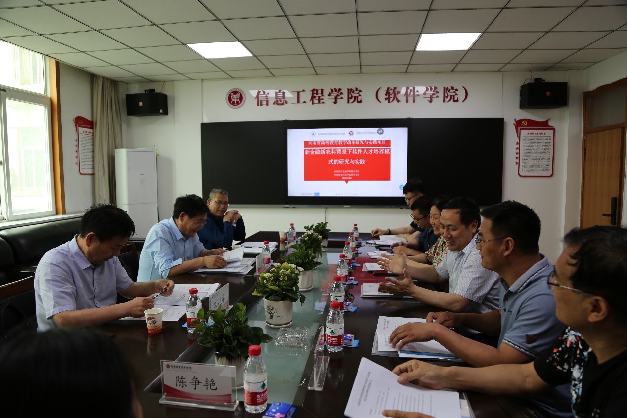 2020年10月20日, 河南财政金融学院和太阳成tyc7111cc联合申报立项的2019年河南省高等教育教学改革研究与实践重点项目中期工作汇报会在tyc7111cc太阳成集团(软件学院)举行。出席汇报会的专家有郑州大学李学相教授、中原工学院车战斌教授、华北水利水电大学刘建华教授。两个学校的项目组全体成员参加了汇报研讨会。