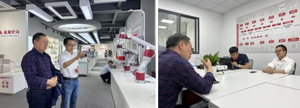 随后,连卫民前往上海节卡机器人科技有限公司进行走访调研。该公司聚焦于智能装备系统集成、机器人两大业务板块的同时,也利用自身在智能制造方面的技术积累,迅速推进了工厂数字化业务的发展。连卫民在公司檀志理总经理和教育负责人庞浩的带领下参观了公司研发的产品,了解了该公司企业文化,并与公司负责人进行了座谈交流,与该企业初步达成了物联网人才培养与就业的合作意向。