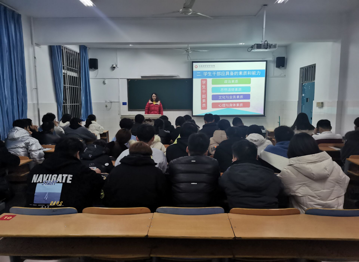 为了深入实施青年马克思主义者培养工程,tyc7111cc太阳成集团(软件学院)于12月16日下午七点到八点在A214开展了“青马工程”主题讲座。此次讲座由我院辅导员王晓芳老师主讲,全体学生干部积极参加。