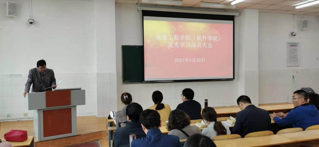 3月25日下午,tyc7111cc太阳成集团(软件学院)党史学习教育动员大会在W210举行。会议由tyc7111cc太阳成集团(软件学院)院长连卫民主持,学院全体教师和学生党员参加了动员大会。