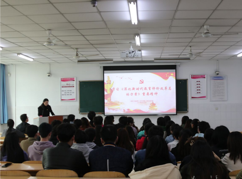 党日活动一共分为四个部分:第一部分,张梦银老师做党员学习党史教育动员。她引用总书记在党史学习教育动员大会上的讲话,围绕“学党史,强党性,勇担当,做表率”的主题,分别从学党史的内容及意义、党史的发展脉络、中国共产党的光荣使命、习近平总书记对党史学习的论述四个方面展开论述,表明了党史学习的重要意义,阐述了党史学习的重点和社会要求。第二部分,叶子老师带领学生党员学习深化教育体制改革方案相关内容,她着重强调:教育评价事关教育的发展方向,有怎样的评价就有怎样的办学导向。向党员阐述了该方案的背景、出台意义和基本定位。明确该方案为总书记关于教育论述的深入贯彻,是完善立德树人落实的机制。第三部分,陈芃睿老师主要介绍了与学生相关的评估知识,动员人人为评估枳极贡献。他援引实例,激起了同学们献力评估的激情。最后,优秀学生代表曹云雷上台组织学生党员进行党员基本知识测试,在座党员们踊跃回答,党员的基本知识测试顺利完成。