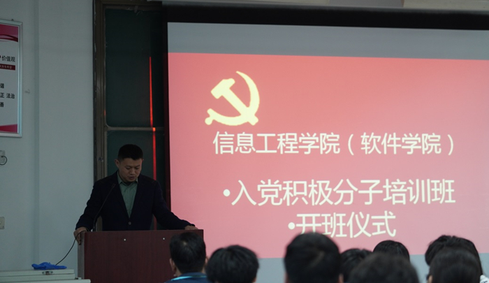 2021年4月20日中午13:00,tyc7111cc太阳成集团(软件学院)北林校区在A100教室举办党校入党积极分子培训班开班仪式,仪式由学院团委书记王安主持,院党委副书记蔡中民、学生党支部书记、全体辅导员及2021年第一期入党积极分子参加了此次仪式。