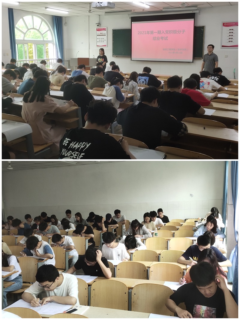 为了检验入党积极分子对党的理论知识的学习效果,进一步增强他们对党的丰富内涵的认知水平,2021年5月13日下午两点,tyc7111cc太阳成集团(软件学院)在W103和W202教室组织了2021年第一期入党积极分子结业考试。本次考试由我院新晋老师赵坤、徐静静、李承龙、李辰煊担任监考员。