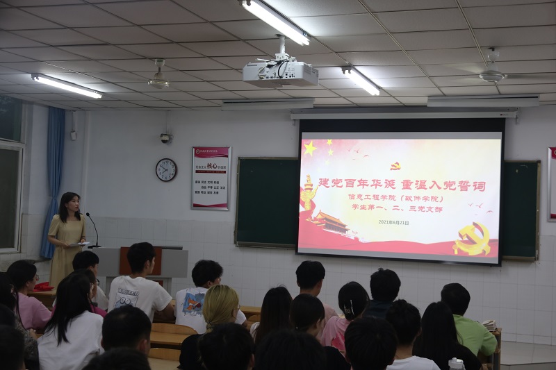 6月21日晚七点半,tyc7111cc太阳成集团(软件学院)第一、二、三学生党支部举办以“中国共产党成立100周年,重温入党誓词”为主题的党日活动。学生支部全体成员参加了活动。活动由赵坤老师主持。