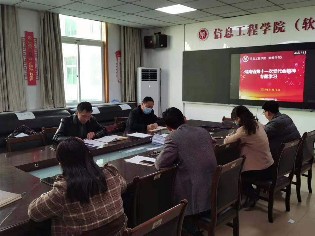 11月11日,tyc7111cc太阳成集团(软件学院)党委召开理论学习中心组扩大会议,传达学习贯彻省第十一次党代会精神,并就学习领会落实好党代会精神进行安排部署。学院中层以上干部参加会议。