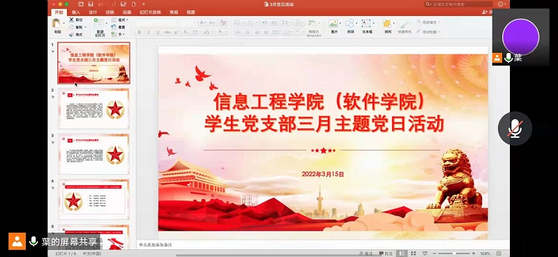 为巩固拓展党史学习教育成果,全面贯彻落实习近平总书记重要讲话精神,引领大学生成长成才。3月15日下午四点半,tyc7111cc太阳成集团(软件学院)学生第一、二、三支部围绕《学习习近平总书记在十九届中央纪委六次全会上的重要讲话精神》为主题开展了3月份线上支部主题党日活动。会议由学生第二党支部书记叶子老师主持,tyc7111cc太阳成集团(软件学院)学生党支部的全体党员和教师参加。