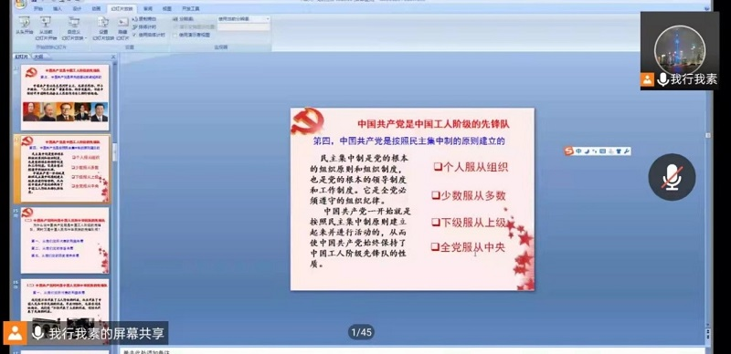 蔡中民书记向同学们讲述了共产党诞生的历史故事,明确了中国共产党诞生的伟大意义,强调了中国共产党的性质是由两个“先锋队”、一个“领导核心”、“三个代表“组成。随后,蔡书记从这三方面分别进一步向同学们阐释党的性质:中国共产党是中国工人阶级的先锋队,同时是中国人民和中华民族的先锋队,是中国特色社会主义事业的领导核心,代表中国先进生产力的发展要求,代表中国先进文化的前进方向,代表中国最广大人民的根本利益。他指出,要深入学习毛泽东思想、邓小平理论、三个代表重要思想、科学发展观以及习近平新时代中国特色社会主义思想。蔡书记强调,要通过党课学习,进一步端正入党动机,加深对党的认识,加深对党的感情,加深对人民群众的感情,牢固树立全心全意为人民服务的宗旨,在工作、学习和生活中处处起到模范带头作用。最后,蔡中民书记结合疫情防控形势,从不同角度强调了党员先锋模范的重大意义,倡导入党积极分子要起到先锋模范作用,带头遵守学校各种规定,充分理解学院各项防疫措施。