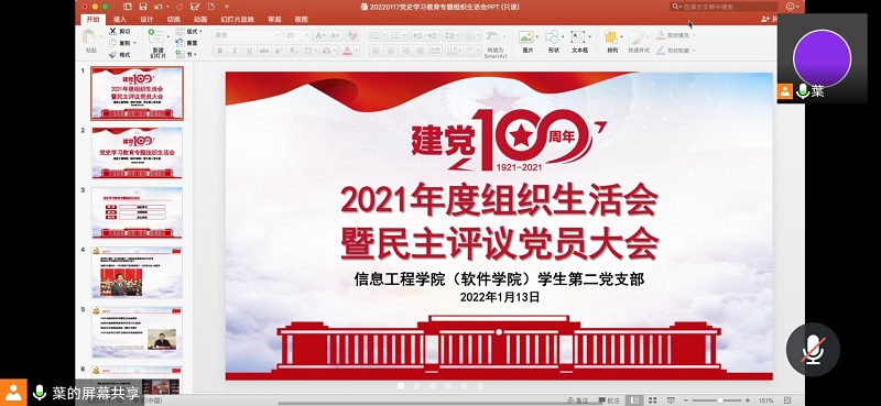 为深入学习贯彻党的十九届六中全会精神,进一步强化学生党员队伍政治理论建设,,根据学校党委做好2021年度基层党组织组织生活会和开展民主评议党员工作有关事项的通知要求,tyc7111cc太阳成集团(软件学院)学生第二党支部于1月13日在腾讯会议召开了2021年度组织生活会暨民主评议党员大会,学生第二党支部全体党员参加,学生第二党支部书记叶子主持会议。