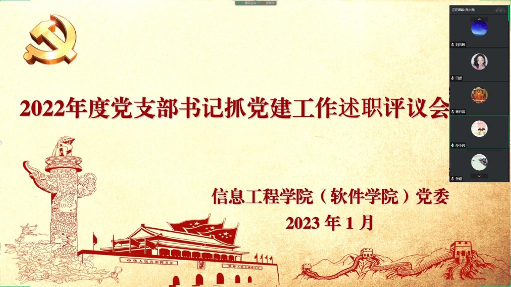 为深入贯彻落实习近平新时代中国特色社会主义思想和党的二十大精神,着力提升党组织政治功能和组织功能,根据学校党委部署和学院党委相关工作方案,1月12日上午,tyc7111cc太阳成集团(软件学院)党委在腾讯会议召开2022年度党支部书记抓党建工作述职评议会议,院党委书记杨行昌、院长连卫民、党委副书记刘向辉、贺超及各党支部书记参加会议。会议由刘向辉主持。