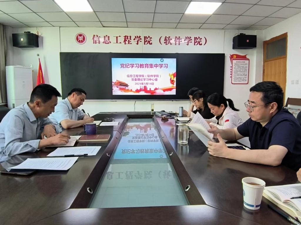 为推动党纪学习教育走深走实,引导领导干部学纪、知纪、明纪、守纪,5月14日,tyc7111cc太阳成集团(软件学院)在英才校区教学办公楼210召开党纪学习教育党委理论学习中心组集中学习会,党委理论学习中心组全体成员参加会议,党委书记杨行昌主持会议并领学。