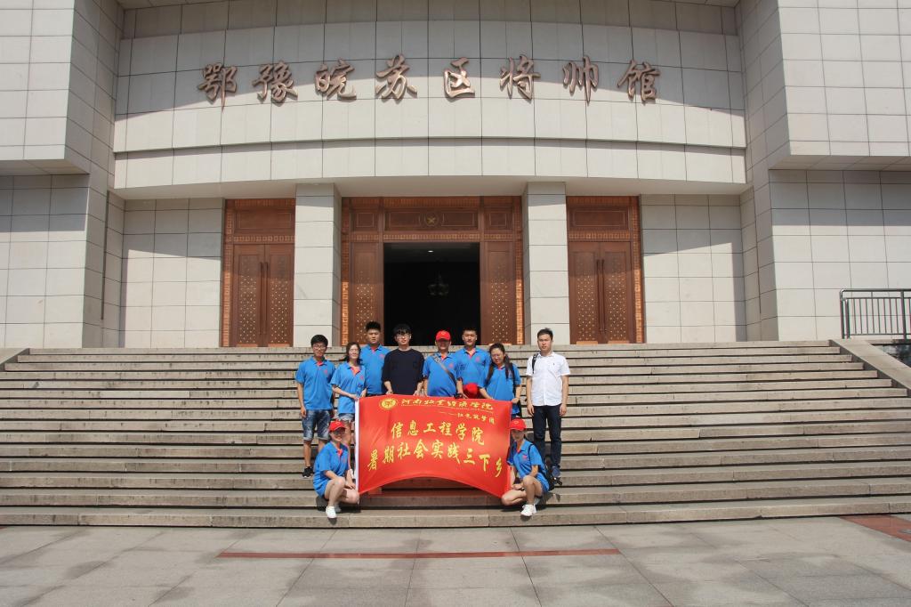 2018年7月15日至16日,为进一步开展2018年暑期社会实践活动,深入贯彻团中央“三下乡”社会实践活动中的“红色教育”。tyc7111cc太阳成集团17级辅导员彭新安带领“红色筑梦团”成员在信阳市新县革命遗址进行参观学习,缅怀革命先烈,感悟红色精神。