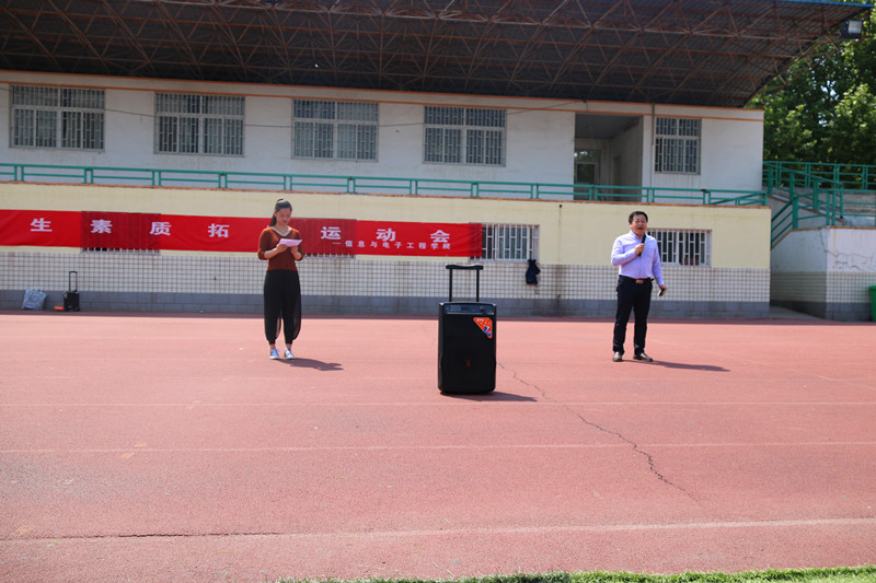 2017年4月27日下午,信息与电子工程学院师生趣味运动会在英才校区田径场举行。我院党总支书记潘胜寒、院长连卫民、党总支副书记蔡中民、教学副院长王桂芝、科研兼行政副院长张建伟、团总支书记买菁菁、各教研室老师和辅导员老师出席开幕式。党总支书记潘胜寒和团学会副书记李倩主持此次趣味运动会。