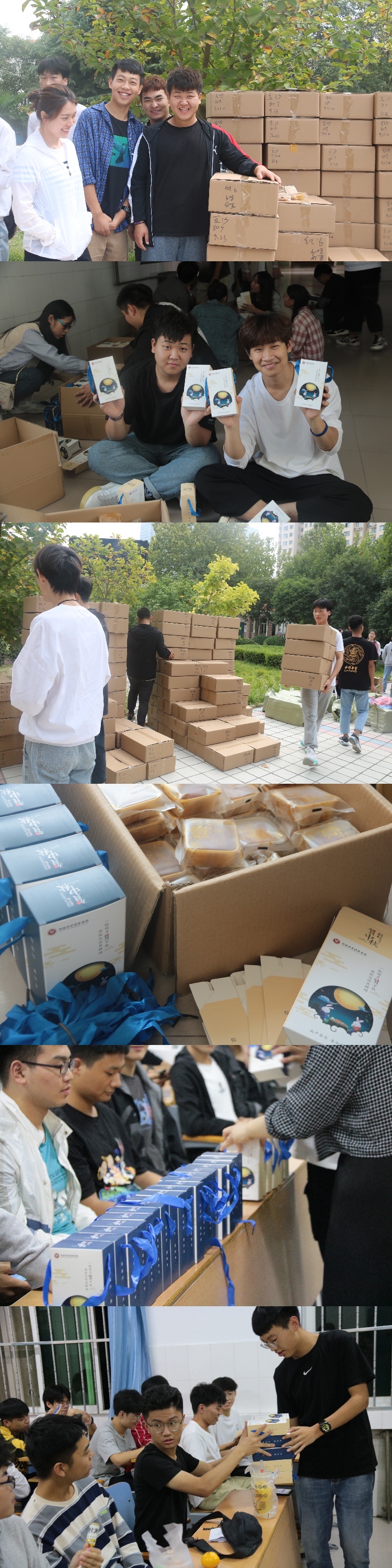 活动在欢乐祥和的气氛中开始,志愿者们一丝不苟的对月饼进行清点、分发、登记等工作。准备工作完成后,志愿者们开始为各班班长分发班级月饼。活动井然有序地进行着,学生们露出了开心的笑容!同学们纷纷表示:中秋佳节虽不能和家人团团圆圆,但学校准备的精美中秋月饼让他们幸福十足,更让他们感受到了大学这个大家庭的满满的爱。
