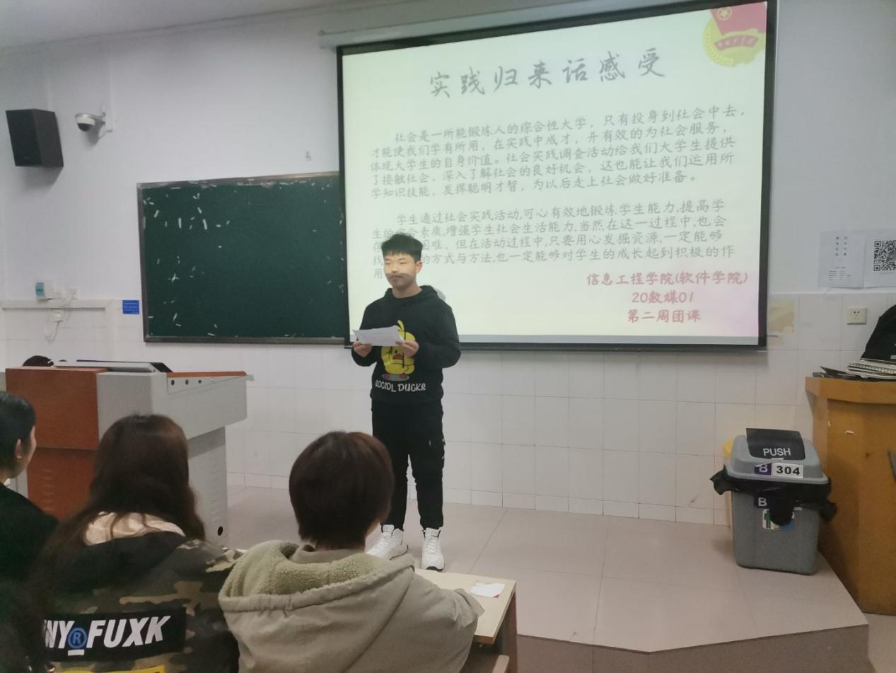 为了使大一新生更加了解自己专业的就业方向,不断提高同学们参加社会实践活动的积极性,tyc7111cc太阳成集团(软件学院)于2021年3月17日19:30在教学楼B楼开展了面向我院2020级全体学生的“实践归来话感受”主题团课活动。