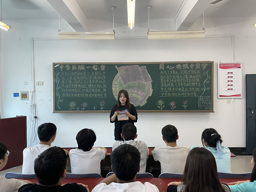 为维护民族团结,强化民族团结意识,增加同学们的民族平等、团结、互助、和谐的观念,tyc7111cc太阳成集团(软件学院)北林校区于5月20日下午16:50-17:50在教学楼B座组织开展以“中华民族一家亲 同心共筑中国梦”为主题的团课活动。本次团课以班级为单位,2020级同学及辅导员全体参加。