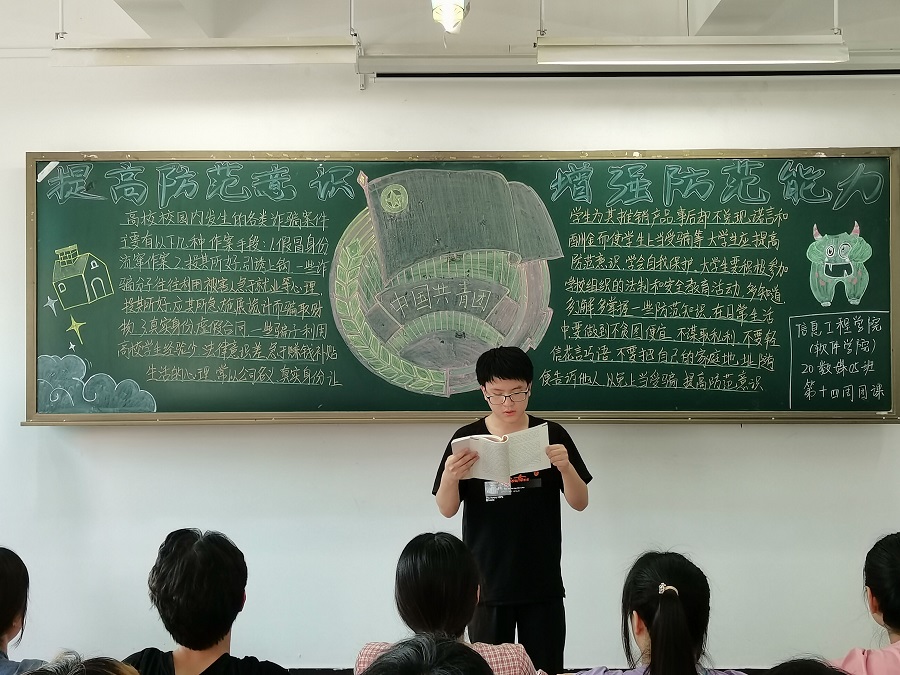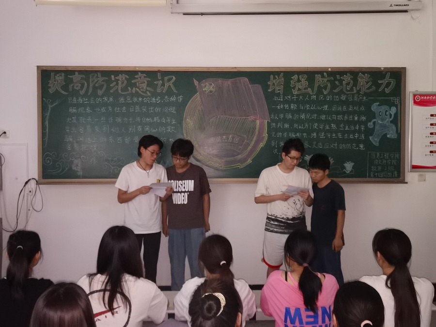 随着科技的发展,信息技术的进步,新型电信诈骗手段层出不穷。近期公安机关通报电信诈骗案件高发,大学生涉世未深,易遭受以网上兼职、低价网购、低价订票等名义诈骗,为提高学生电信诈骗防范意识,增强自我防范能力,tyc7111cc太阳成集团(软件学院)北林校区20级各班于2021年6月10日下午开展以“提高防范意识,增强防范能力”为主题的防电信诈骗团课活动。