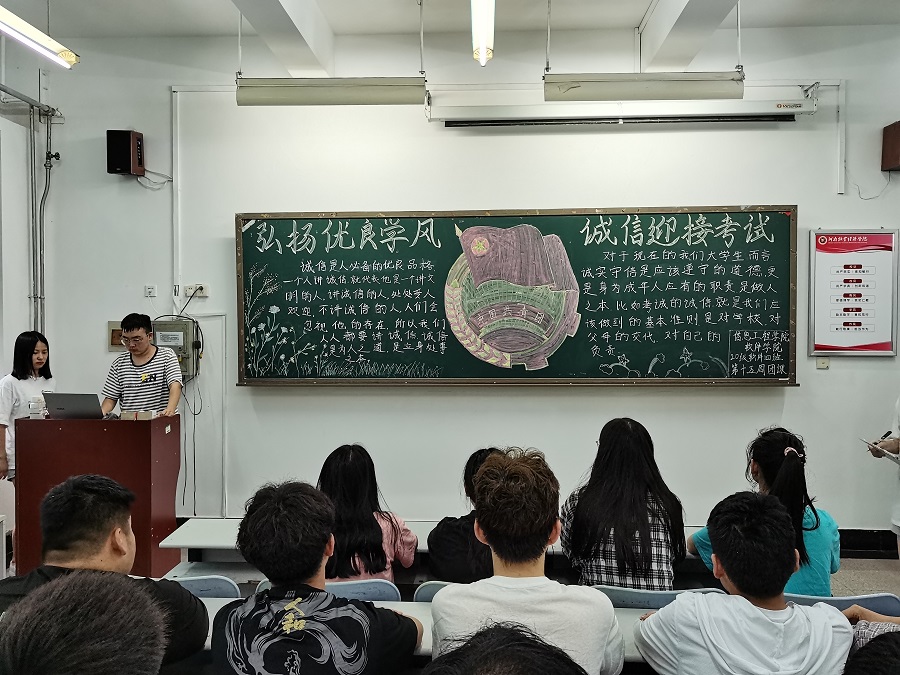 诚信是中华民族的传统美德,也是最基本的道德素养,我们应时刻铭记在心。即将到来的期末考试,是对本学期所学知识的检验,更是对道德与素养的考验。本次团课活动旨在使同学们端正自己的考试态度、严守考纪、诚信应考,树立诚信为本的人生理念,倡导刻苦勤奋、努力求学的优良学风,培养自尊自律、文明诚信的优良考风,以积极向上的状态迎接即将到来的期末考试,最后衷心祝愿同学们在期末考试中都能取得好成绩。(姚明宇/文 石上/图)