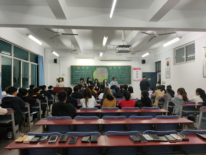 本次活动开始之前,各班团支书以及组织委员带领同学们到教室进行绘画板报等准备工作,并由团支书准时组织开展团课活动,各班同学都积极踊跃参加团课活动,展现自己积极热爱祖国的一面。并由校团委,院会组宣部进行考察指错纠正。本次活动全面引导学习同学们通过社会实践,使我们在实践中认识社会,增长才干,提高自身素质,为日后的生活奠定基石,社会实践使是引导我们学生投入社会的良好形式,是培养锻炼的可靠渠道,是提升思想的有效途径。众所周知,社会实践是大学生思想政治教育的重要环节,对促进大学生了解社会了解国情增加才干,为奉献社会,锻炼自身能力培养品质的增强,需要实践来充实自己,实践出真知,实践长真才。最后,由主持人告知同学们,作为新时代的大学生,时代要求我们德才兼备,德育先行,做一名全面发展的优秀大学生,做社会杰出的后备军,切实做好自己的事情,争做时代先锋,以实际行动报效祖国,争取为推进中华民族伟大复兴贡献青春力量。