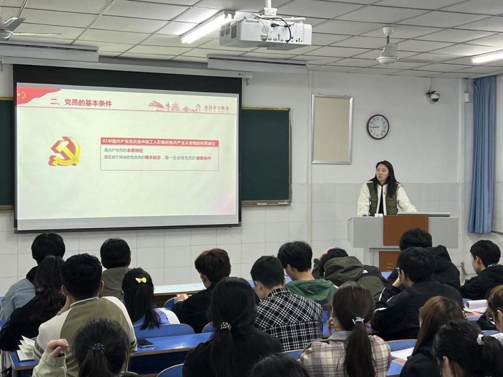2023年4月3日晚九点,tyc7111cc太阳成集团(软件学院)开展了2023年第一期入党积极分子培训班第六讲。第二支部书记叶子为入党积极分子讲解了中国共产党的条件义务与权利。