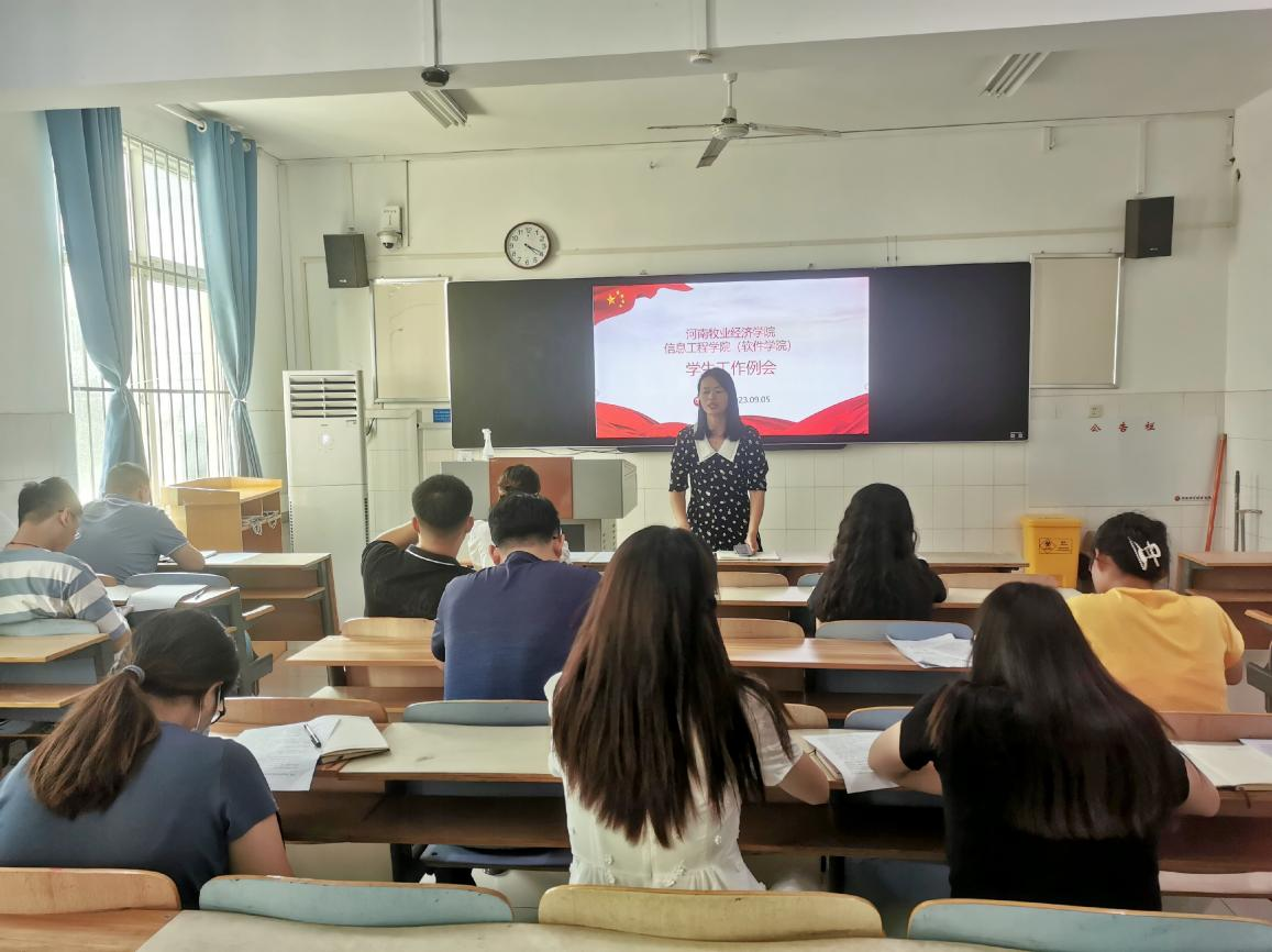 9月5日下午3点,tyc7111cc太阳成集团(软件学院)在英才校区教学楼B205召开新学期学生工作会议,学院党委副书记刘向辉主持会议并作了重要工作部署,团委书记刘雪梅、团委副书记赵坤、英才校区全体辅导员参加了会议。
