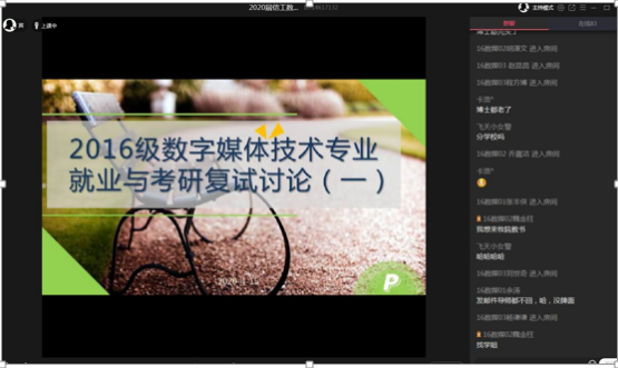 受新冠疫情影响,为了确保学生学习和实习安全,我校采取延迟学生开学、暂缓毕业生实习等措施。随着考研复试国家线的发布以及毕业期的临近,为确保学生顺利就业,4月15日tyc7111cc太阳成集团(软件学院)组织并开展了2020届毕业生就业与考研复试指导活动,活动以网络直播的形式展开,2016级数媒专业辅导员薛老师担任主讲人,学生积极踊跃参与其中,积极讲述自己在就业、复试中所遇到的问题,辅导员针对学生所提问题耐心解答。