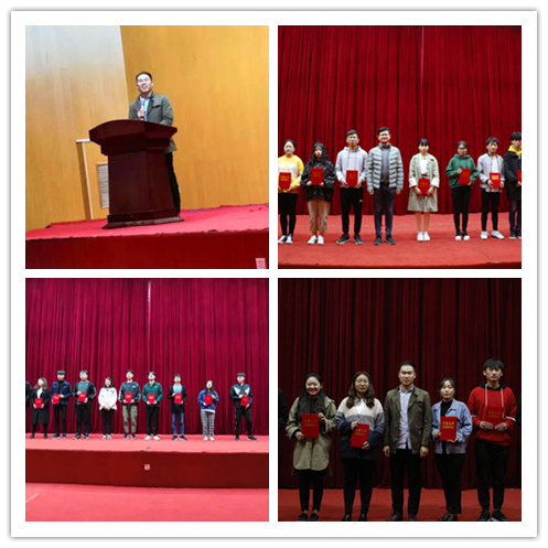大会伊始,首先由17级辅导员彭新安老师做2017-2018学年总结表彰报告。彭老师主要从思想引领、团课开展、班级建设、学风培养、社团活动、社会实践与志愿服务等方面总结了2017级全体同学在第一学年取得的优异成绩和存在的不足,并提出殷切期望:一是希望同学们志存高远,尽早做好职业生涯规划;二是脚踏实地,戒除惰性心理,端正学习态度,改进学习方法,提高学习效率,提升综合素养;三是增强集体荣誉感,提升班级凝聚力,再接再厉,再创辉煌。接着是颁奖环节。出席大会的各位老师分别为2017-2018学年涌现出来先进班集体和优秀个人进行颁奖并合影留念。