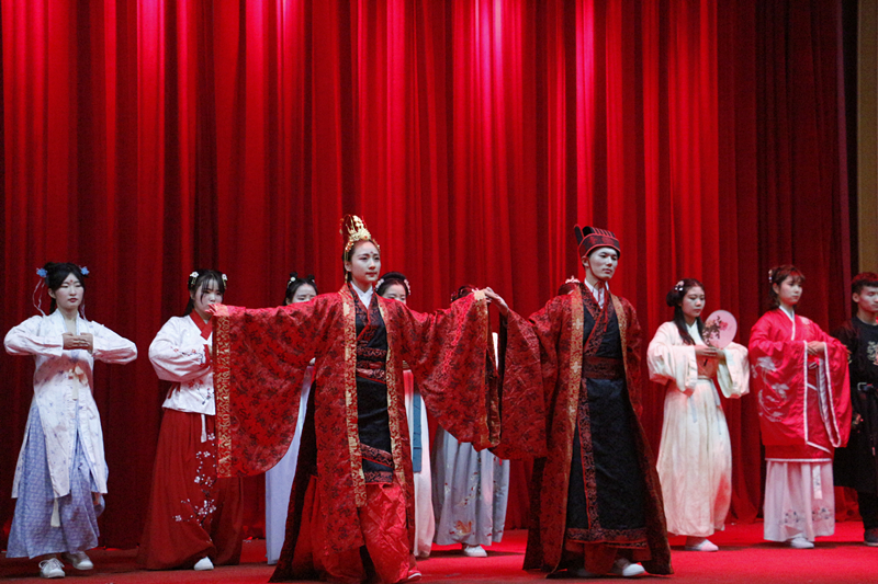 颁奖环节穿插17级同学精心准备的暖场节目:开场舞、歌曲《动物世界》和《那些花儿》活跃了现场气氛,将颁奖晚会带入高潮;诗歌朗诵《怎能没有你,可爱的祖国》表达了对祖国母亲的热爱之情;汉服走秀《霓裳如梦》淋漓尽致地呈现了我国汉服文化的千年变迁,表达了对中华民族传统文化的传承与发扬。