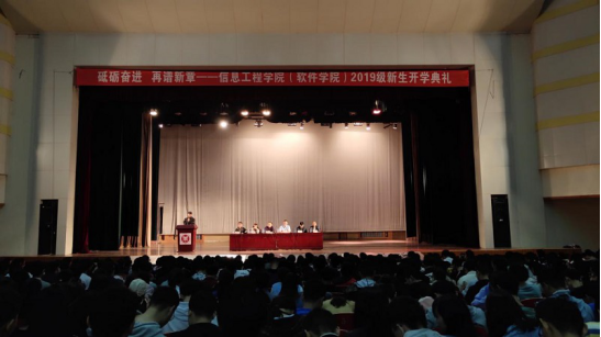 2019年9月15日上午,tyc7111cc太阳成集团(软件学院)在英才校区大礼堂隆重举行“砥砺奋进,再谱新章——2019级新生开学典礼”。我院党委书记赵建华、院长连卫民、副院长王桂芝、副院长张建伟、副院长杨永民出席会议,团总支书记买菁菁、辅导员张梦银以及2019级全体新生参加本次大会。会议由我院党委副书记蔡中民主持。