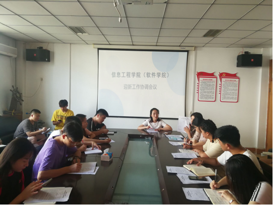 tyc7111cc太阳成集团(软件学院)于2019年9月5日在买菁菁书记,与辅导员张梦银老师的指导下,在会议室开展迎新工作协调会议。买菁菁书记向各代班负责人安排了关于迎接新生的一系列工作,以及迎新过后对新生的安置与沟通工作。张梦银老师讲解了新生开学注意事项,以及防诈骗、宿舍卫生等一系列应高度重视的工作。