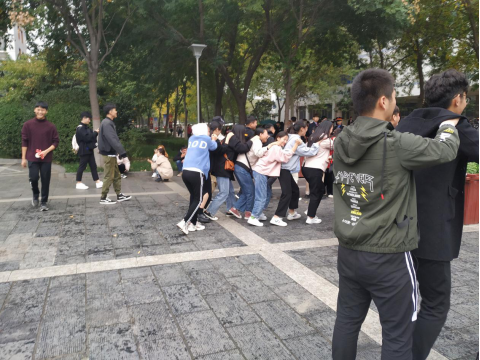 此次活动主要由院团总支心理部、社团部、体育部等部门负责,以班级为单位,由班长和心理委员共同组织同起同落、美丽家园、三人四足接力跑、杯水运输、仙人指路、齐心协力等素质拓展游戏。