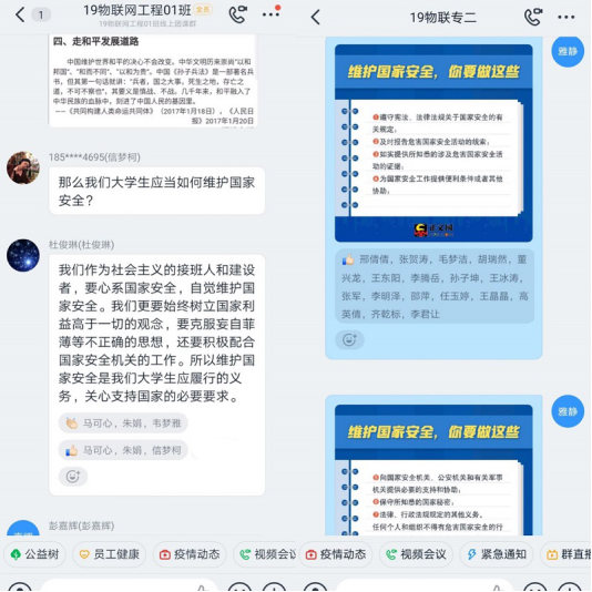 为增强学生的国家安全意识,提高学生维护国家安全的责任感,营造维护国家安全的浓厚法治氛围,tyc7111cc太阳成集团(软件学院)于2020年4月16日在钉钉班级群开展“维护国家安全,青年勇于担当”主题团课。