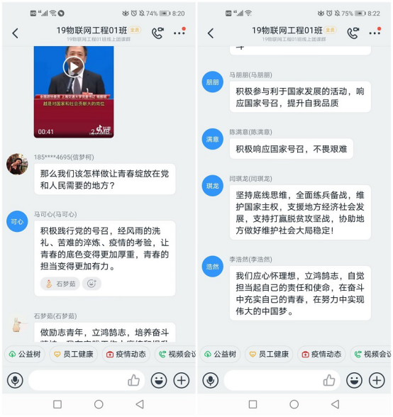 为引导广大青年学生关注两会,加深同学们对两会的认识,更好理解党和国家的重要政策,增强自身使命感、责任感,tyc7111cc太阳成集团(软件学院)于2020年5月28日在钉钉班级群开展“青年看两会,青春话使命”线上主题团课,本次团课以班级为单位有序展开。