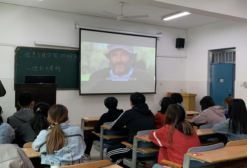 为促进大学生身心健康全面发展,营造积极乐观、健康向上的和谐校园氛围,tyc7111cc太阳成集团(软件学院)于10月23日在教学楼A107开展了“看抗疫电影,营健康心境”——心理影片赏析活动。