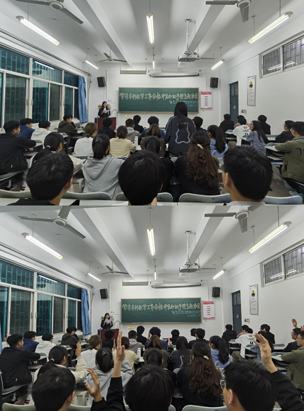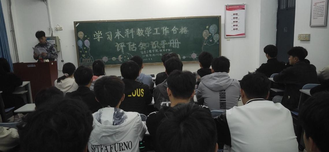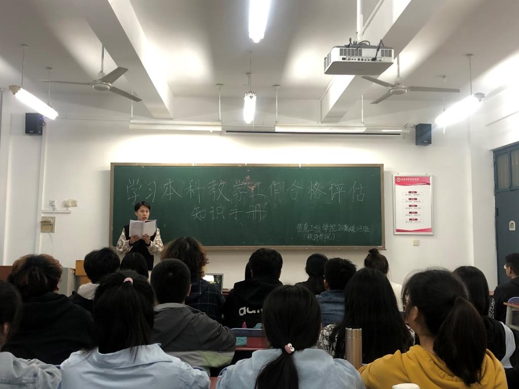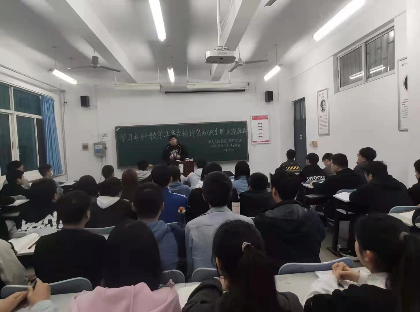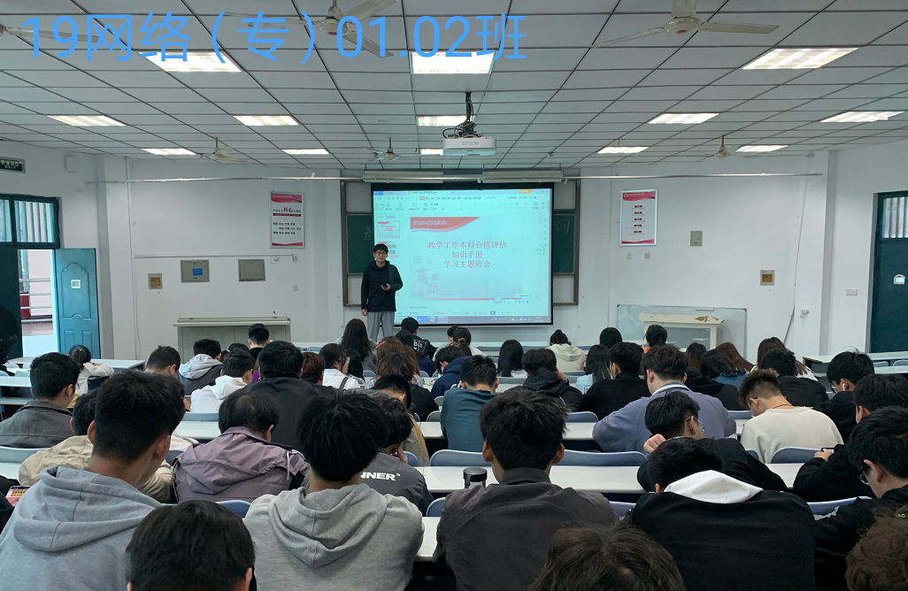 为更好迎接本科教学工作评估,切实落实学校迎评促建的要求,营造“人人关心评估、人人了解评估、人人参与评估、人人是评估对象”的良好氛围,我院于4月8日开展了“本科教学评估知识宣讲”主题班会活动。此次班会由各班学习委员主持,19、20级全体成员参加。