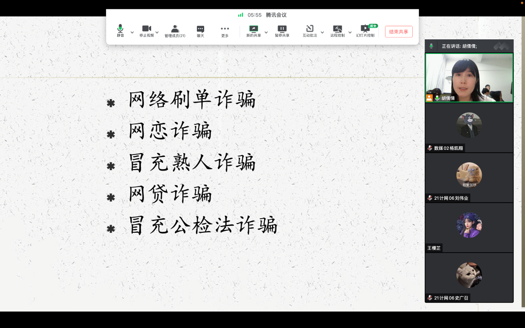 为进一步防范电信网络诈骗,提高学生的反欺诈意识,我院结合实际情况采取线上宣传的方式为学生进行防诈骗教育。