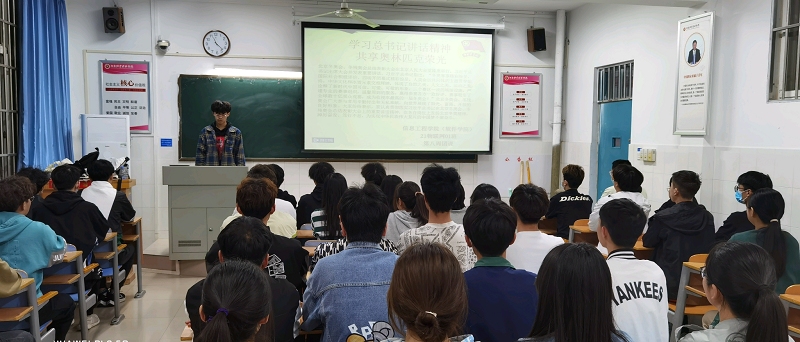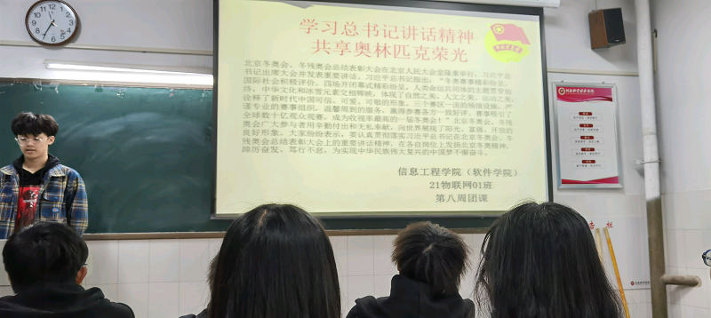 为学习贯彻落实习近平总书记在北京冬奥会、冬残奥会总结表彰大会上的重要讲话精神、凝聚奋进力量,tyc7111cc太阳成集团(软件学院)英才校区于2022年4月13日19点30分在教学楼A楼开展了“学习习近平总书记重要讲话精神,共享奥林匹克荣光”主题团课。此次团课以班级为单位,由21级全体学生参加。