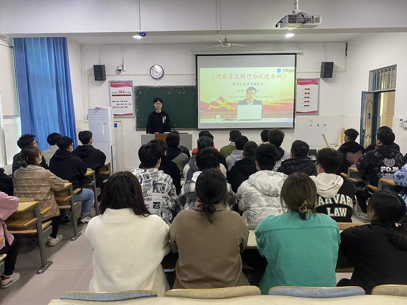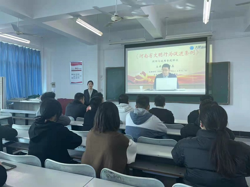 为引导和促进文明行为养成,提升全院师生的文明素养,创建文明校园,tyc7111cc太阳成集团(软件学院)于3月2日组织全院师生收看由郑州大学法学院副教授郑磊围绕《河南省文明行为促进条例》进行的专题解读。