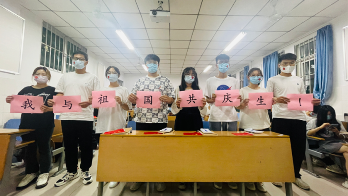 新生中在10月1日这天过生日的同学们手拉我为“我与祖国共庆生”横幅,脸上洋溢着喜悦的笑容,手中摇晃着中国国旗,播放着义勇军进行曲,心中许下对祖国母亲的美好祝愿。学院特意给过生日的同学们发放定制笔记本、黑色签字笔、口罩作为生日礼物,特地为同学们准备生日长寿面,同学们凭面条卡即可领取。我院学子表示用自己的方式为祖国的大好河山贡献自己的力量,慷慨激昂的演讲展现了他们坚定的信念,表达了对祖国无限的热爱,诠释了身为中华子女的自豪感,用心举行了一场浓浓的爱国主义庆祝活动。活动围绕“我与祖国共庆生”这一红线,将中国特色元素一自己独有的方式展现的淋漓尽致。