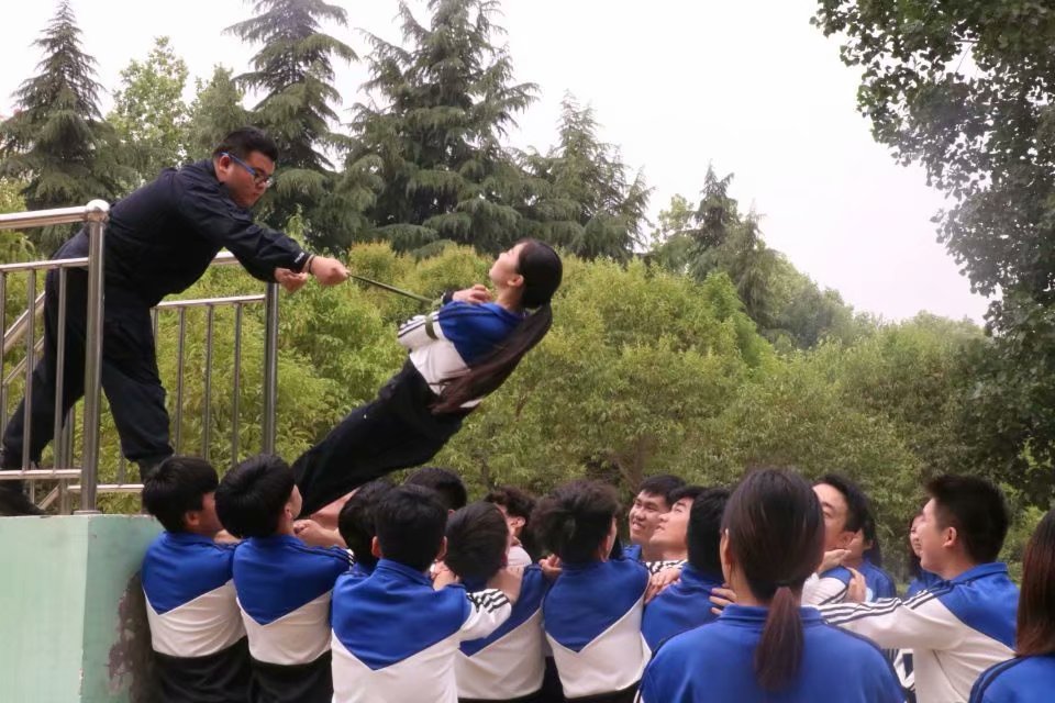 同学们跑了两圈后,素质拓展活动一系列活动陆续开展。教官把同学们分成四队,分别是“雷霆队”、“团结队”、“王者队”、“欧皇队”。上午进行的是“鼓动人生”和“信任背摔”两个项目,中午大家在短暂的休息过后又陆续玩了好几个游戏,分别是“支援前线”、“生死电网”、“疯狂市场”和“南水北调”。活动的趣味性让在场的每一位同学无不尽笑颜开,同时在活动的中间还不时的穿插一些总结,真正让同学们体会到了其中蕴含的“团队协作、高效率完成工作”的知识。