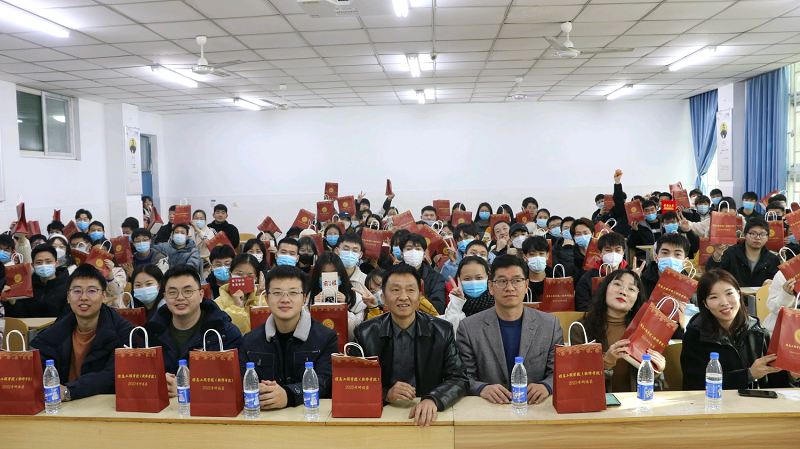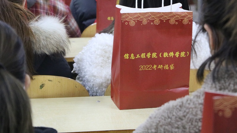 在本次活动中,杨行昌书记作了重要讲话。杨书记首先对在考研路上持之以恒的同学予以了肯定,并表示了祝贺。杨书记向同学们叮嘱了在临考前可能出现的各种突发情况,并引导同学应该树立冷静面对这些状况的积极态度,同时他还用自身考研经历来勉励在座的各位同学,并提醒大家做好以下四点:一、梳理好自己的情绪,不要过度紧张,用适度的紧张来迎接考试;二、保持自信,有付出必有回报,要对自己保有信心;三、要合理安排好自己的时间,在考试前的这几天里要注重劳逸结合,在考试时更是要注重时间分配;四、要处理好细节,在考试之前要把自己的考试用品给准备齐全,确保万无一失。杨书记事嘱咐考生在考试前要注意饮食,希望大家平稳心态、有条不紊地迎接考试。杨书记表示:学院永远是大家的后盾,并且预祝各位考研学子:考研花开,成功上岸。最后,院领导与各位辅导员老师一同为考研学子们分发印有“祝2022届考研学子金榜题名”字样的考研福袋,其中包括了水笔、面包、口罩、明信片、心想事“橙”。这些满怀期待的礼物将助力考研学子成功上岸。